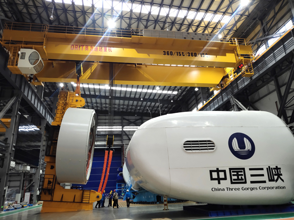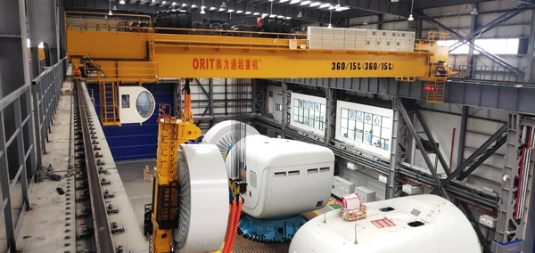 近日,我国清洁能源捷报频传,继10兆瓦风电机组成功下线不久后,13兆瓦亚洲单机容量最大风电机组于今年2月22日在福建三峡海上风电产业园成功下线。这不仅带动了我国风电全产业链升级,引领我国海上风电再获新突破,同时也促进大型国产吊装设备、安装运维等发展。ebpay钱包有幸参与东方风电13兆风电机组生产线大吨位双梁桥式起重机的设计、生产、安装、维护等项目建设,分别交付360t双小车起重机2台、150t起重机2台、125t起重机3台、100t起重机1台和32t起重机1台,用于10MW和13MW系列海上风力发电机组电机和整机装配。