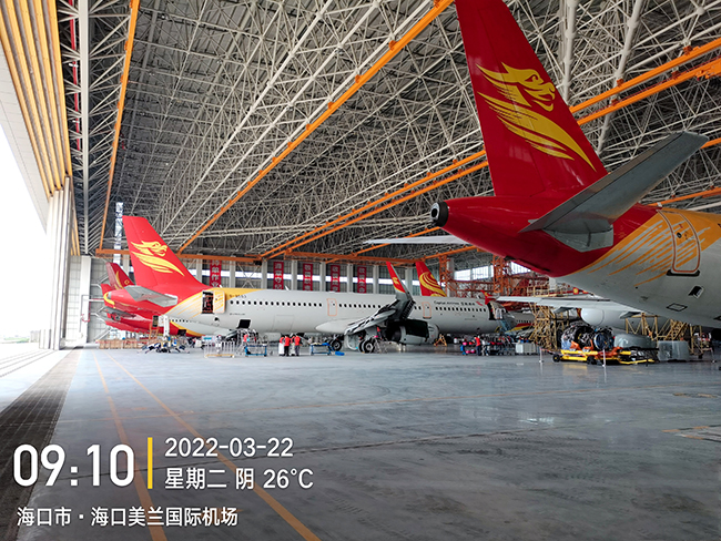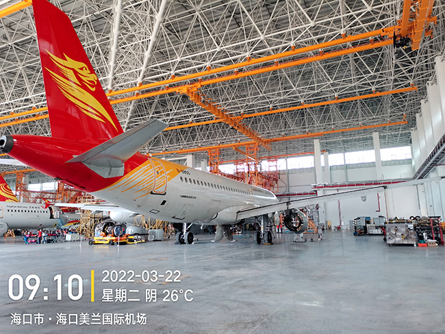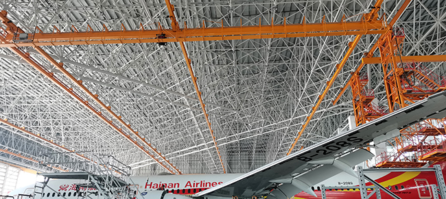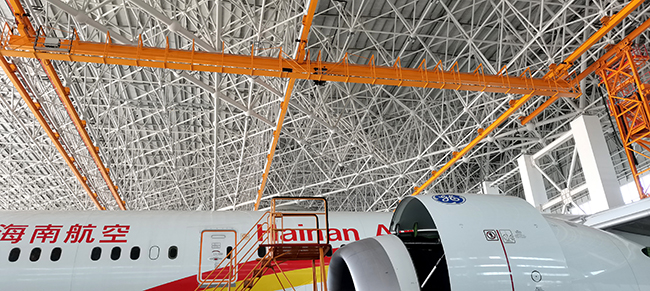 海口空港飞机维修工程有限公司于2020年8月向ebpay钱包采购海口民航飞机维修机库用多支点超大跨度悬挂起重机8台,应用于海口美兰机场新基地机库的建设,于2022年3月正式交付投入试运营,中国南大门的自贸港中再添亮丽的一抹金色,ebpay钱包成为海航飞机的最美守护神。