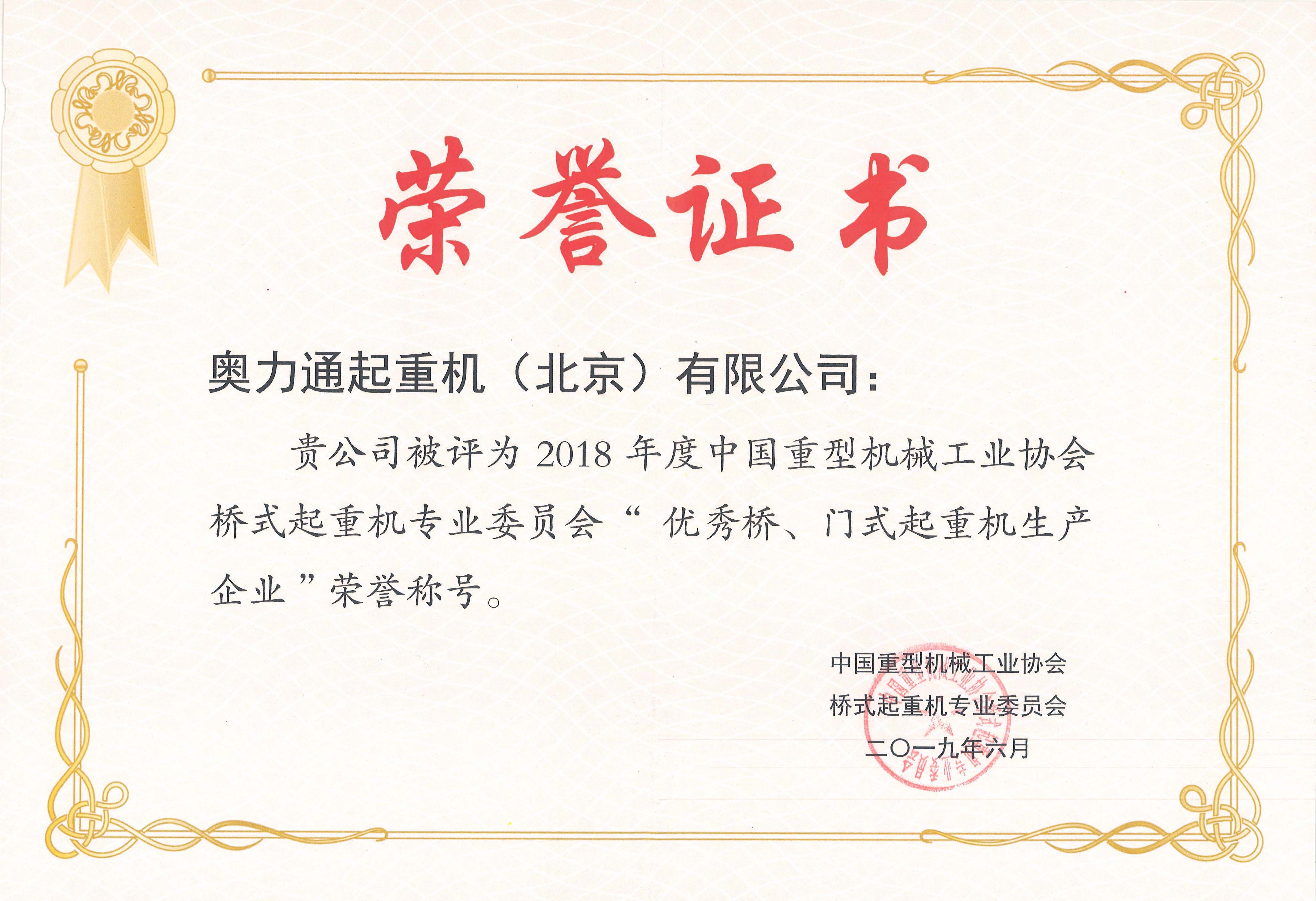 ebpay钱包荣获“优秀桥、门式起重机生产企业”称号